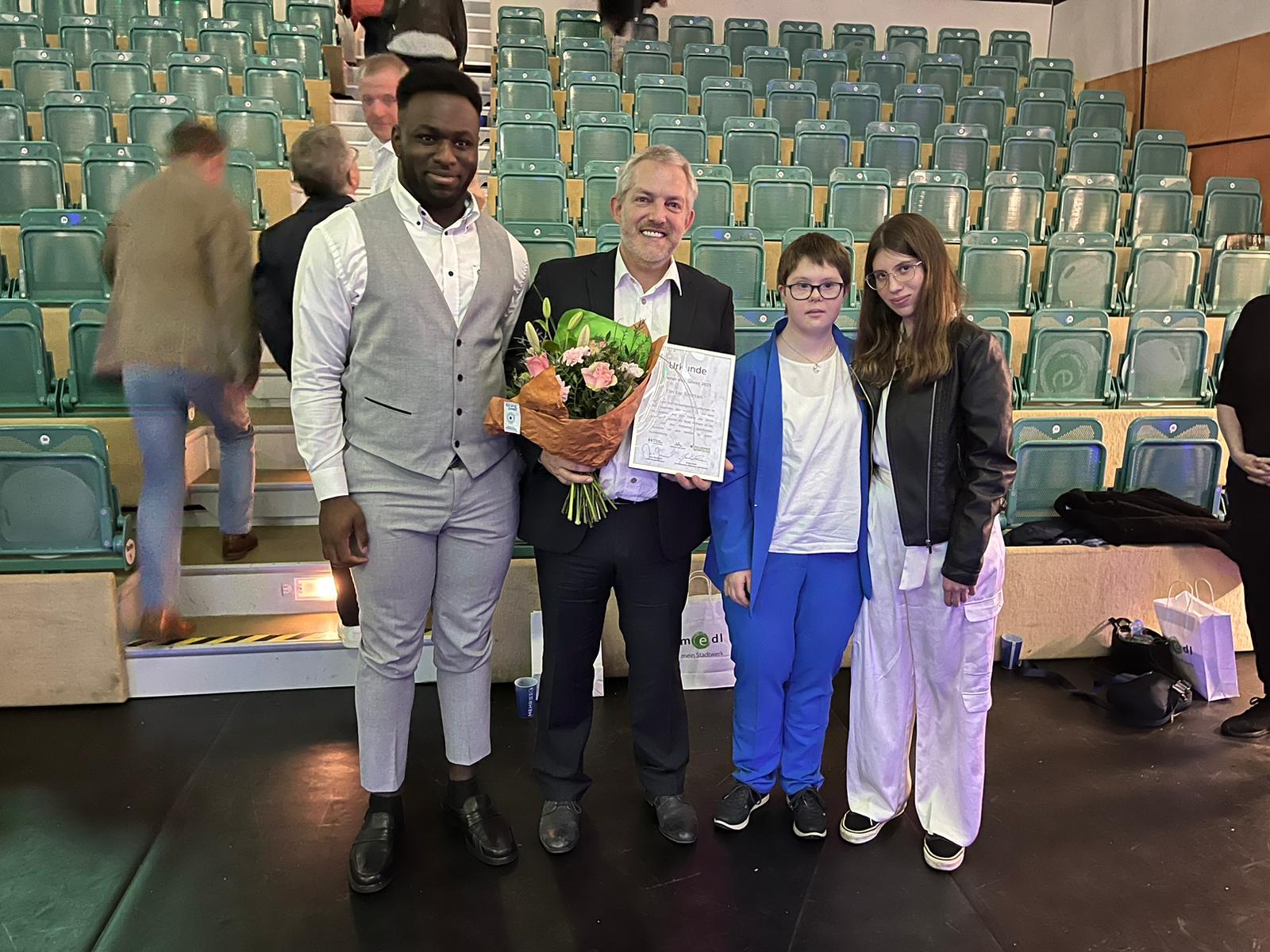 Rechts im Bild, die drei ID-Judoka mit unserem Trainer Tim ter Smitten, der gestern Abend aufgrund seiner herrausragenden Leistungen zum Trainer des Jahres 2023 gekürt wurde.