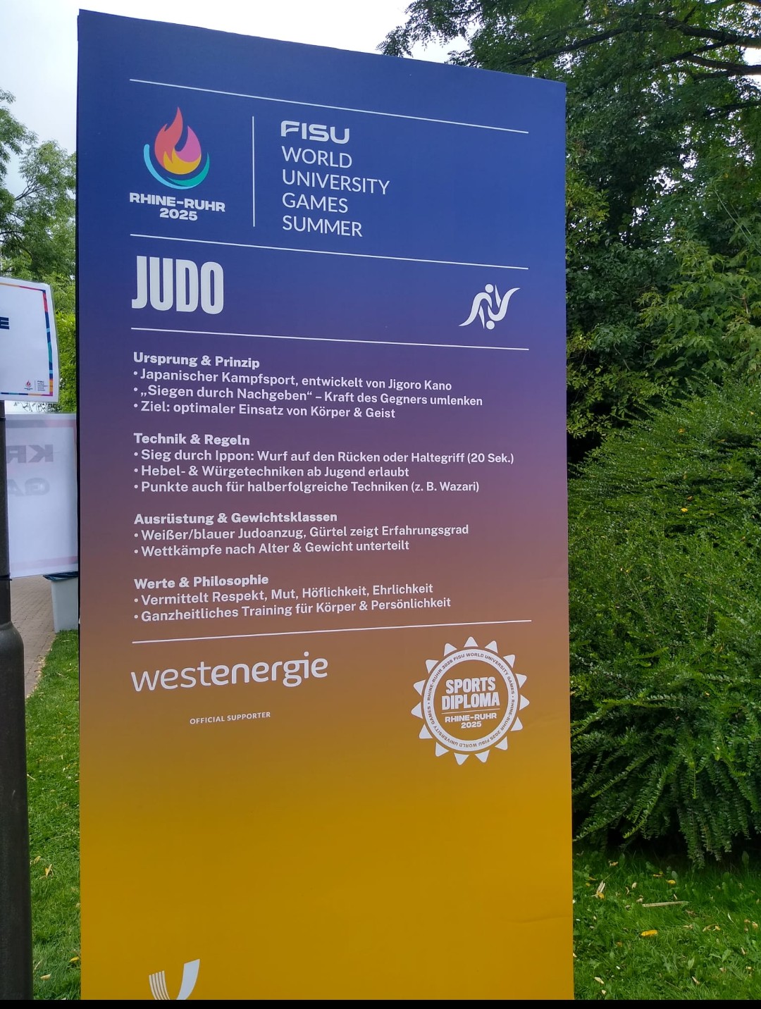 Teilnahme an den FISU World University Summer Games in Essen am Judo Demonstrationsstand des Nordrheinwestfälischen Judoverbandes